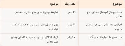 پیامهای حساس: – ضرورت مسدودسازی ورودی بوستان ترافیک در اعتمادیه برای جلوگیری از ورود وسایل نقلیه – برخورد خودرو با جداول و تابلوها در میدان جهاد و تخریب اموال عمومی