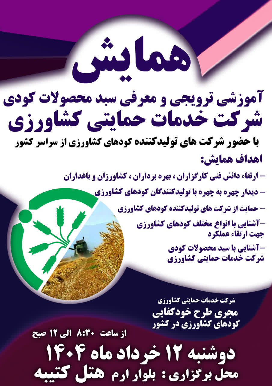 الیاسی در پایان با اشاره به اینکه شرکت خدمات حمایتی کشاورزی استان همدان با 104 کارگزار و عامل فروش در سراسر استان، وظیفه تأمین، تدارک و توزیع نهاده های کشاورزی مخصوصا کودهای کشاورزی را برعهده دارد.